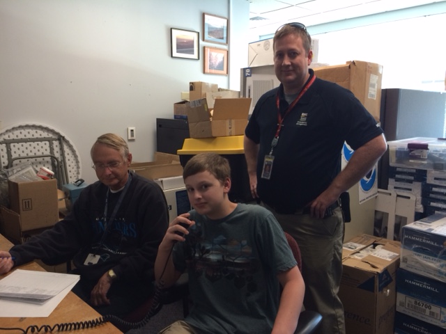 On the air from 7-10:30pm on Friday and 8am-7pm on Saturday at the NWS office on Centennial Campus in Raleigh, the WX4NC team consisted of NWS Warning Coordination Meteorologist Nick Petro WX3H, former NWS Meteorologist-in-Charge Darin Figurskey KC2IPY, CCS Emergency Coordinator Virginia Enzor NC4VA, CCS Assistant Emergency Coordinator Bob Woodson WX4MMM, CCS Assistant Emergency Coordinator Scott Lewis KJ4BPV, Statewide Deputy AUXCOMM Coordinator Frank Pleshe N3FRP, Assistant Section Emergency Coordinator – Central Branch Steve Misel K4WEB, Wake County Assistant Emergency Director Steve Newton KJ4TTU, Jackson Newton, Lauren Petro KF7RCU, John Stone K3RHJ, Pam Lewis KB4PAM, Ken Stark W4KJS, Randy Stark WN4RSS, and Jose Guzman KD4JWF.
