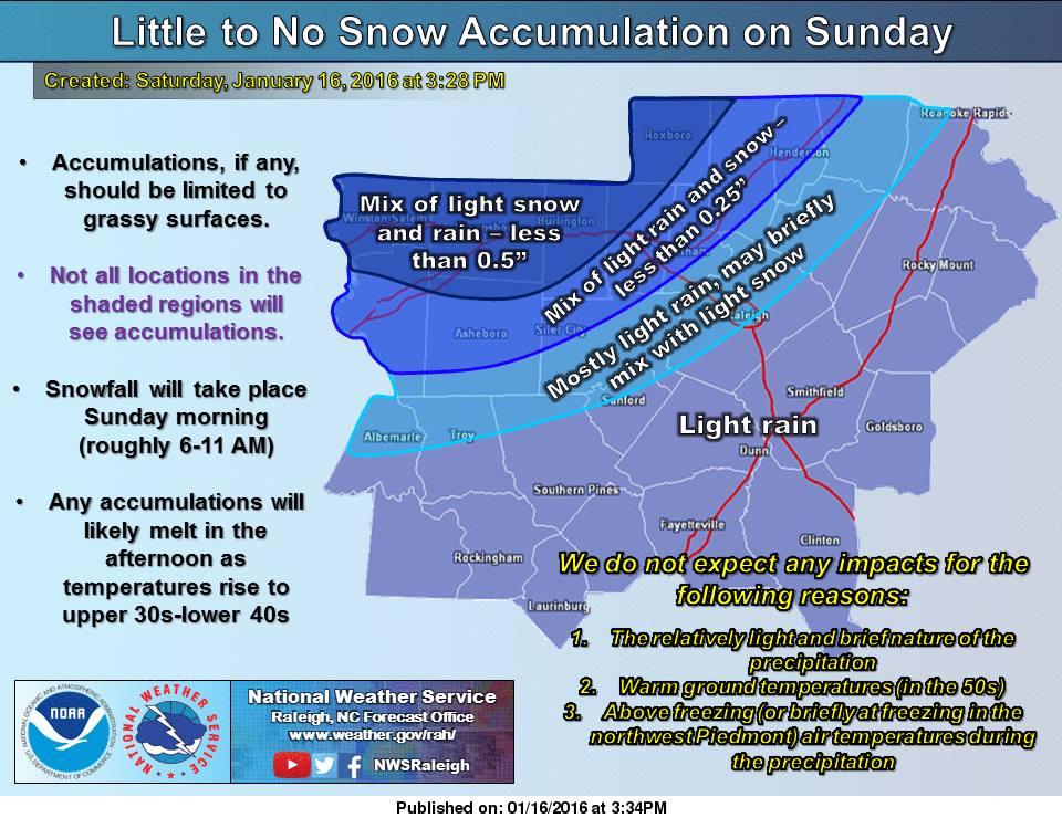 Central Carolina SKYWARN (CCS) will activate for this event per the direction of the Raleigh National Weather service. We will activate on the 146.88 beginning at 7:00 AM on Friday and conduct formal nets at the top of each hour until 12:00 midnight. We will begin again at 6:00 AM Saturday and continue until the NWS directs us to stand down. We will monitor in between nets for any changeovers in precipitation.